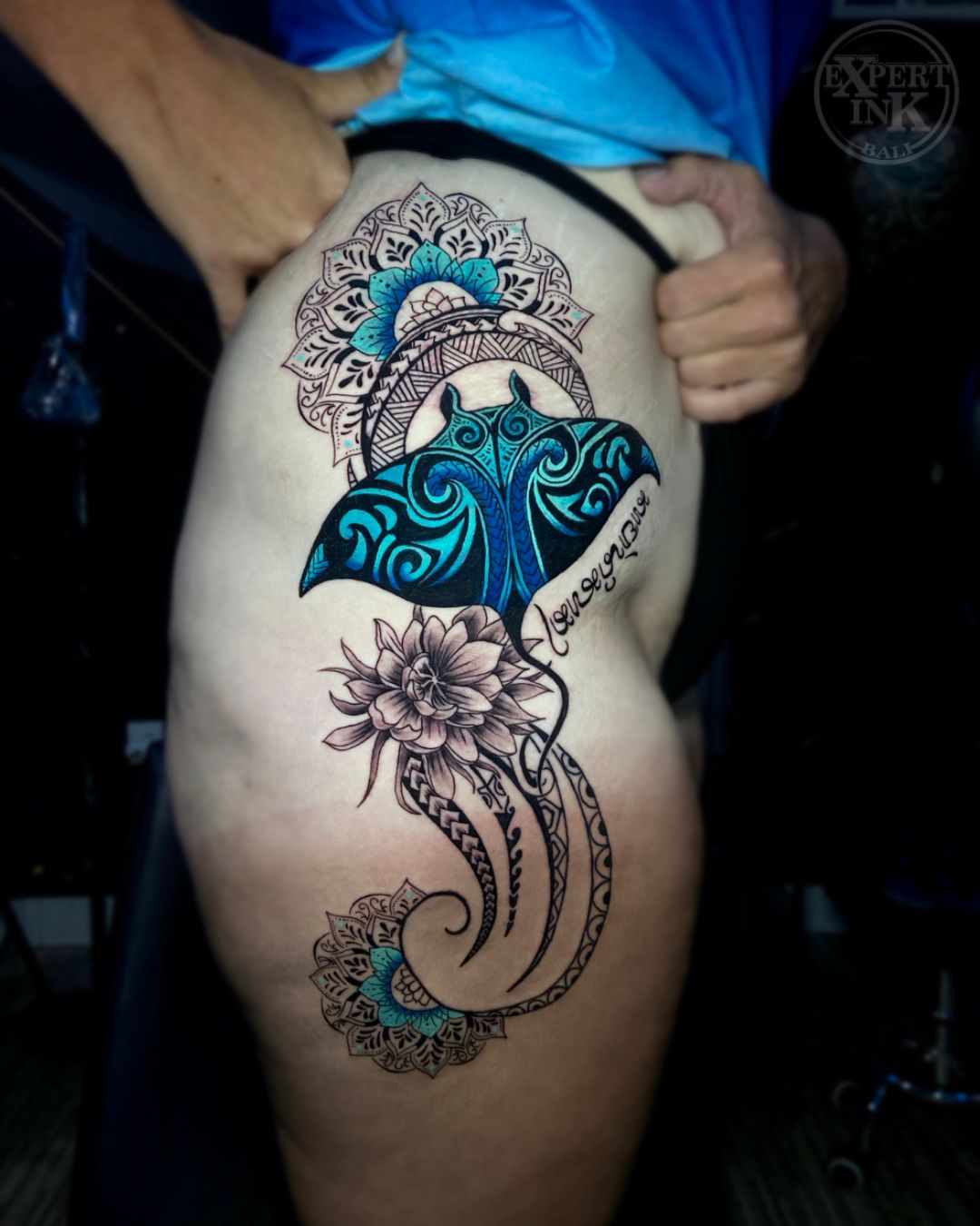 Expert Ink Tattoo Bali's best tattoo artist in Seminyak creating a beautiful tattoo for a customer.