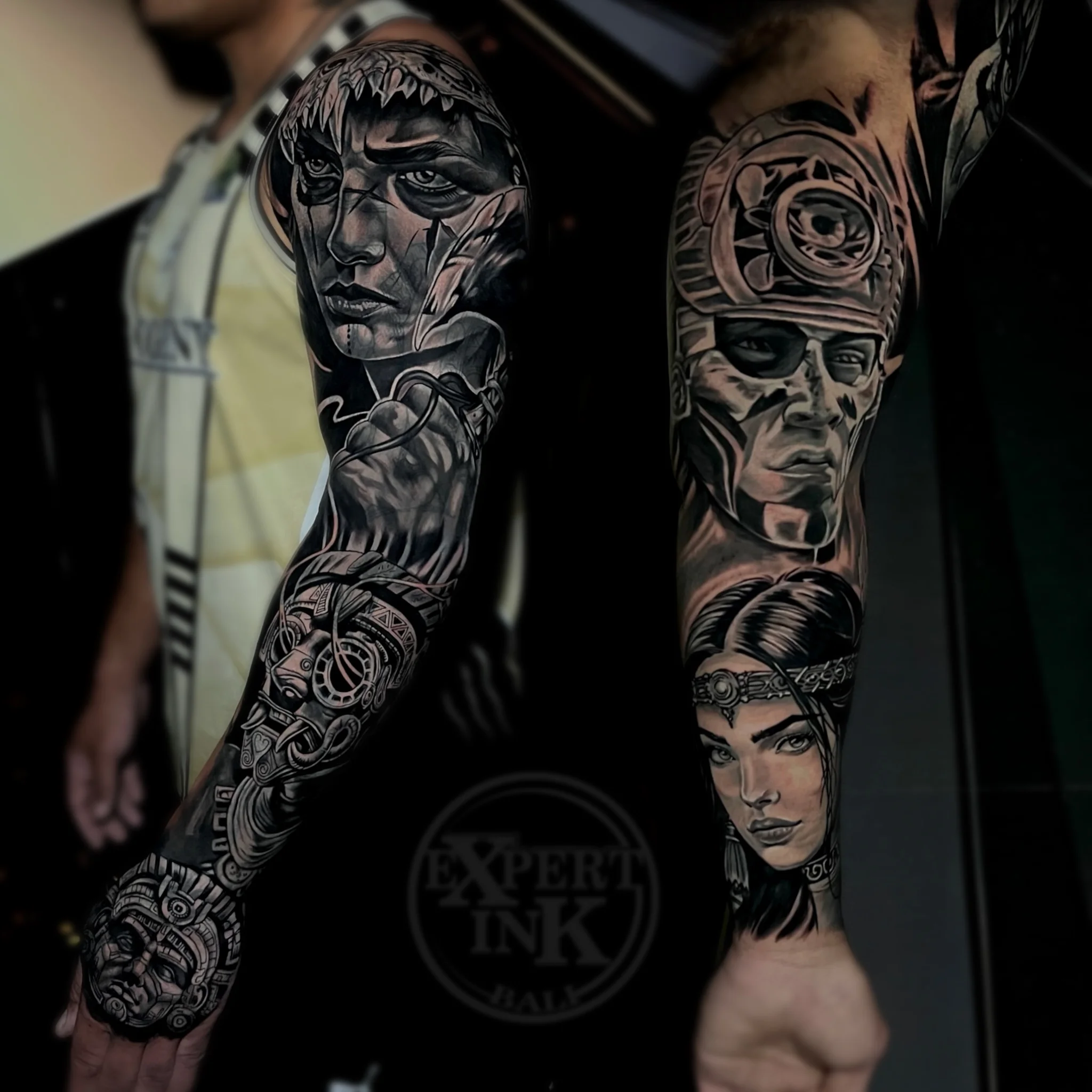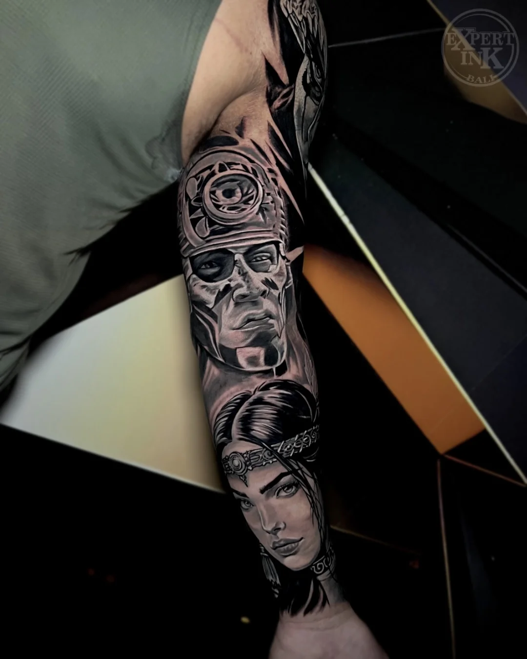 Half sleeve tattoos can be a great way to incorporate a cover up. Our artists can work with you to design a sleeve that not only covers the existing tattoo but also flows seamlessly into new artwork. This can include elements from nature, abstract designs, or personal symbols that have meaning for you.