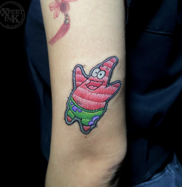 Embroidery tattoos mimic the look of needlework, often resembling patches or stitched designs placed directly on the skin. With a mix of shading, texture, and color gradients, the tattoo looks almost like a real embroidered patch attached to the body. This tattoo style is bold, modern, and a true representation of how far tattoo artistry has evolved.