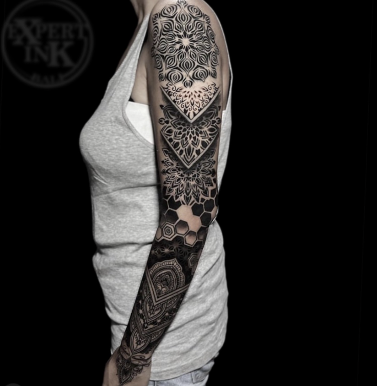 These tattoos require extreme precision and fine line expertise to ensure that every line, curve, and shape is perfectly balanced.
